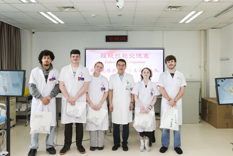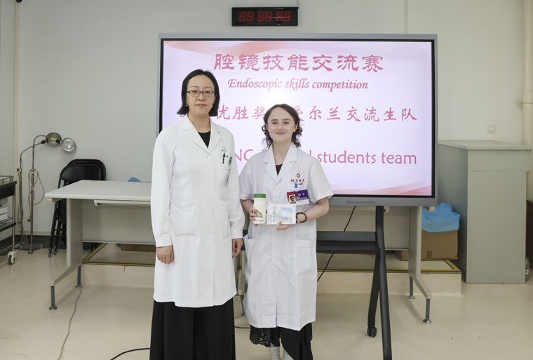 项目期间,“中爱学子”以技会友、以文化心,开展了一场别开生面的腔镜技能交流赛,既展现我院微创外科领域领先教学水平,更成为两国青年医学人才增进理解的生动载体。常务副院长何宏涛、副院长田晓玲现场为优胜团体及个人颁发纪念品。