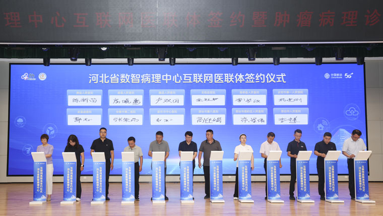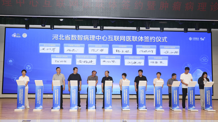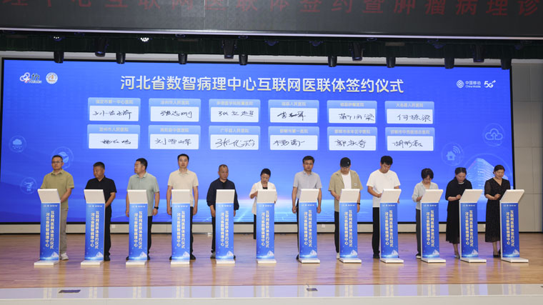 7月11日,河北省数智病理中心互联网医联体签约暨肿瘤病理诊断大模型发布仪式在我院东院区举行。省卫生健康委、省/市医疗保障局、河北医科大学、河北移动等领导,全体院领导,我院职工代表及多家主流媒体,共同见证河北病理领域数智化发展的重要里程碑。