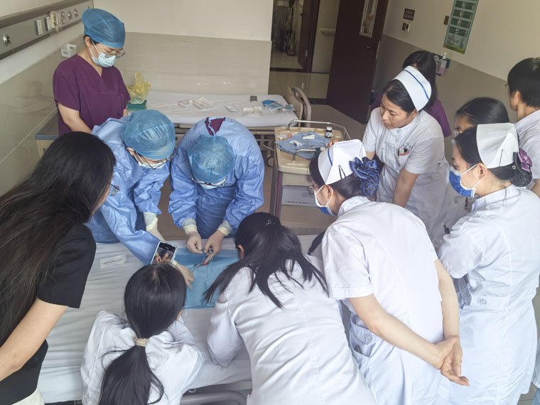 近日,应新乐市中医医院邀请,我院儿科主任刁玉巧教授带领团队,赴当地开展了县级综合医院适宜卫生技术推广项目——脐静脉置管在危重新生儿抢救中的应用。作为儿科适宜技术推广的第二站,此次培训聚焦脐静脉置管及无创辅助通气技术,旨在提高基层医疗机构危重新生儿救治能力。新乐市中医医院儿科、产科多名医护参加培训,学员们纷纷表示受益匪浅省四院专家带来的规范化理论和技术,让我们在学科专业上更加精进”。