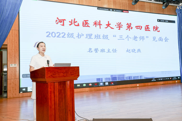 为深化“三个老师”协同育人机制,全方位助力护理学子成长与发展,9月17日,护理教学办公室在本部新医技病房楼报告厅举办2022级护理班级“三个老师”见面会暨名誉班主任主题班会。名誉班主任、护理部负责人赵晓燕,学业导师、护理部副主任刘风侠、梁军利,护理教学办公室主任李志红、副主任范晓丹,班主任吴景梅、李慧娟以及2022级护理专业全体学生共同参与本次活动。