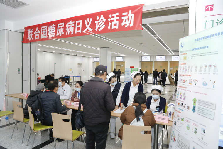11月14日,在第19个“世界糖尿病日”当天,我院内分泌科围绕今年“糖尿病与幸福感——预防糖尿病并发症”主题,在本部及东院区门诊大厅同步举办多学科联合义诊活动,通过专家团队现场诊疗、健康指导及免费检测等服务,为市民提供专业的糖尿病综合防治支持。